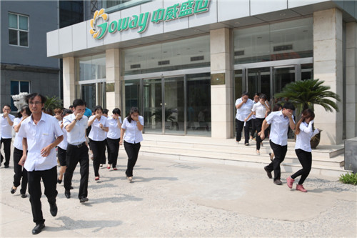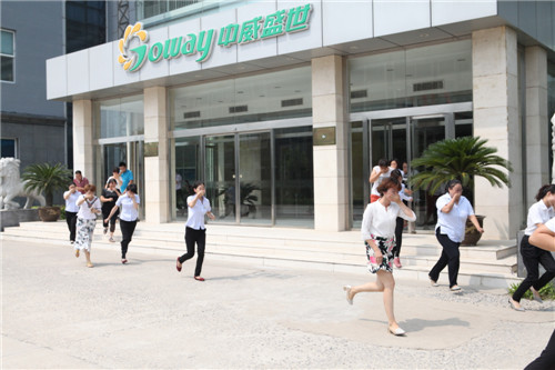“请注意,现在有火情,请大家有序撤离!”此次消防演习,模拟的是办公大楼内发生火情。火灾发生,浓烟滚滚,相关人员一边报警一边打开逃生通道门、切断电源,组织全体员工迅速撤离。大家低姿沿楼道跑出办公楼,安全有序地撤离到指定位置。